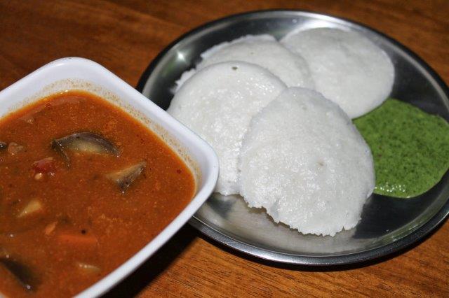 特に、プディナ・チャツネ(ミント [プディナ] とコリアンダー、ニンニク、すり下ろしたココナッツ少々をペーストにしたもの)と、サンバルスープが黄金の組み合わせで、すべてに酸味があるので、消化が非常に容易です。