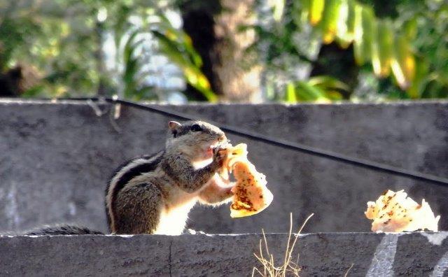 ほわほわの、かわいい (*^o^*) リスさんは、アコラに住んでいる夫の母(通称アイー)が庭に置いておくチャパティ目当てに、毎朝やって来ます。 もぐもぐ、おいしいな! ASKSiddhi 2013 Photo Gallery