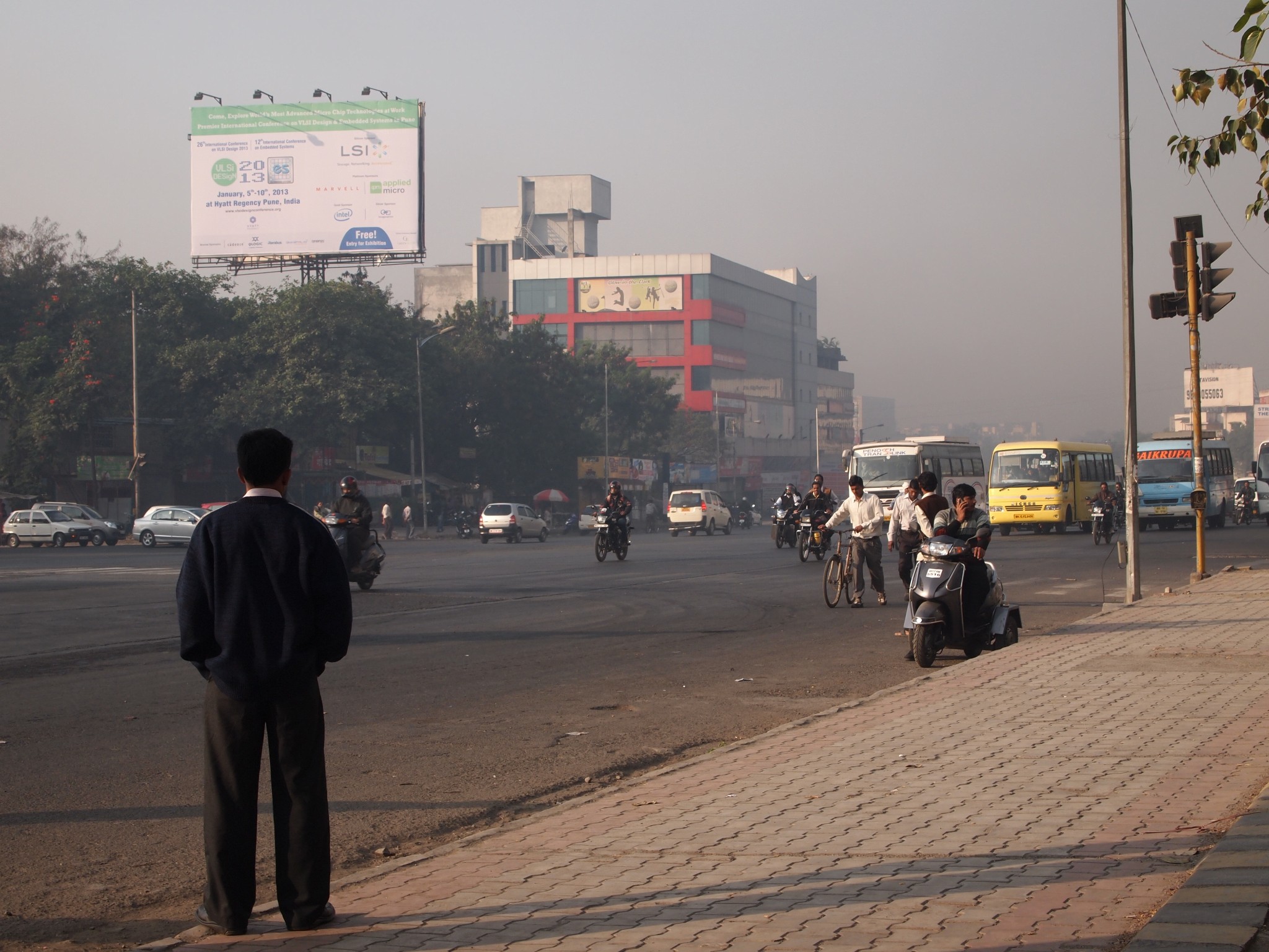 ナガル・ロードのハイアット・リージェンシー付近の、ある冬の朝の光景です。