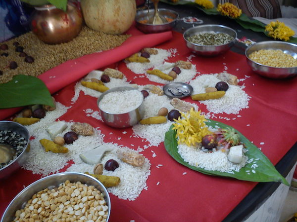 これは、ワストゥ・プージャを執り行う際の準備の様子です。