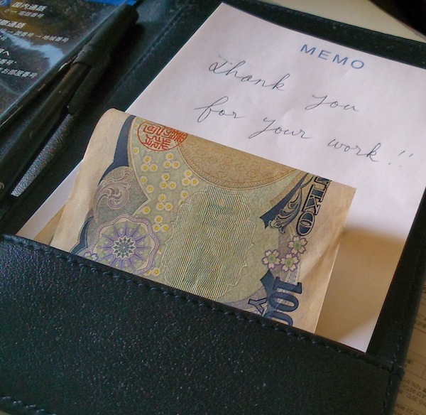 日本においては、心づけの習慣はありません。 東京でよく滞在するホテルには、特に中国の方とおぼしき外国人スタッフが多く奮闘していらっしゃいます。 ささやかだけど、感謝の気持ちです。 ASKSiddhi 2013 Photo Gallery