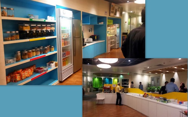 グーグル・バンガロールの社員用カフェテリアの一部です。 社員には食事、飲み物、スナックが無料で提供されています。 いつか、こんな風に清潔で快適な「ノマド」用オフィスが、インドにもできたらなぁ。 ASKSiddhi 2014 Photo Gallery