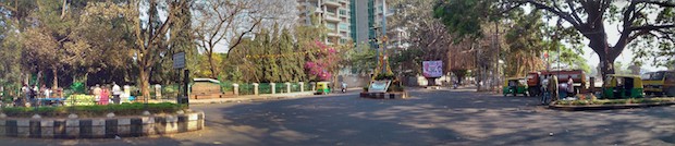 リッチモンド・サークル周辺の路地を歩きながら撮った写真のパノラマ・イメージです。 静かで緑があって、落ち着いたところでした。 通りすがりに小さめのスタジアムも見つけました。 ちなみにこのイメージはグーグルくんが勝手に(自動的に)作ってくれたものです。 明日はバンガロール空港から市内への、夜のタクシー道中をご覧いただきます。 ASKSiddhi 2014 Photo Gallery