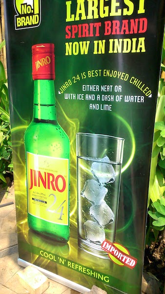 韓国の焼酎、ジンロがインドに進出? 積極的なプロモーションをしているのでしょうか。 コレガオンパークはフィフス(5th)レーンの人気東南アジア料理店、マラカ・スパイスの店先にて。 ASKSiddhi 2014 Photo Gallery