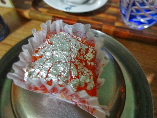ナーグプルを訪れていたスーラクシャナ・ワヒニ(兄の嫁、の意味。ここでは夫より年上のいとこの嫁)が買ってきてくれた、ナーグプル名物のサンタラ・バルフィ(オレンジ果汁を練り込んだ柔らかい砂糖菓子)です。 ちょうど羊羹が大好きだった祖父の22回目の命日だったので、ひとつお供えしました。 お味はいかがでしたか、おじいちゃん。 ASKSiddhi 2014 Photo Gallery