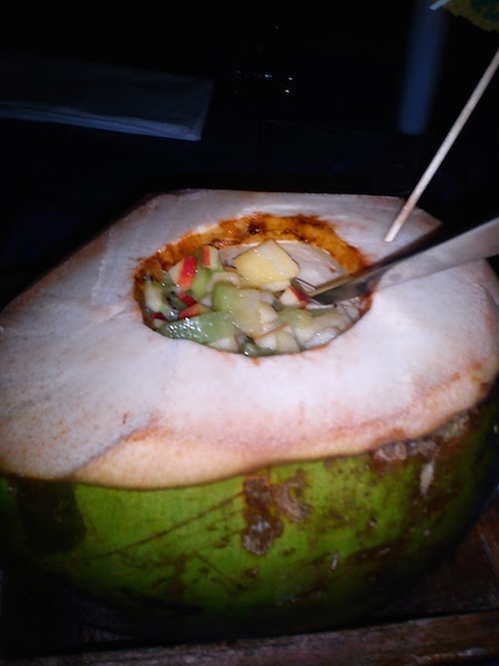 こちらはコレガオンパークのマラカスパイス(Malaka Spice)で楽しめた、フルーツたっぷりココナッツアイスです。