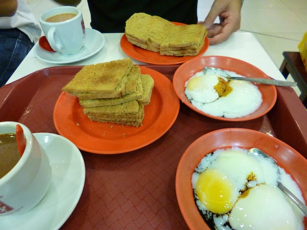 有名なヤ・クンとトースト・ボックスでは、いずれもセットメニューが4.5シンガポール・ドルぐらいからあり、トロトロにゆでられた卵2個と、コピ(コンデンスミルク入りコーヒー)がついてきました。