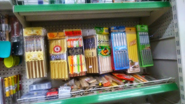 日本、中国、韓国スタイルのお箸たちが、プネのニュー・エアポート・ロードにあるドラブジー・スーパーに仲良く並んでいました。