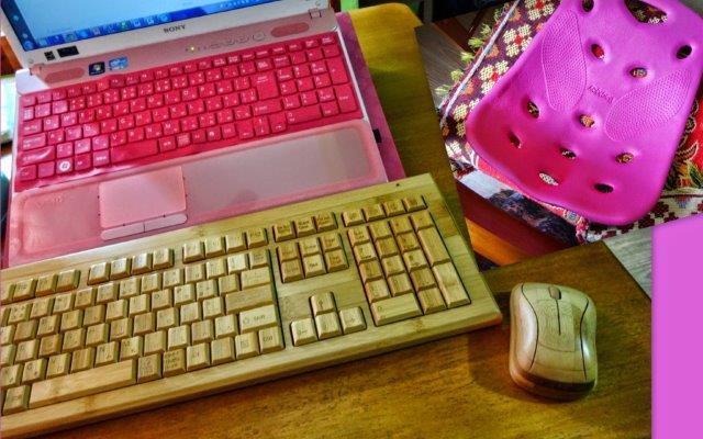 手触りのよい竹製のBluetoothキーボードとマウス、画面の高さを上げるイケアのPCボード、東急ハンズにあった姿勢矯正クッションのバックジョイです。 完全武装した、無敵の翻訳者への第1歩なるか。 ASKSiddhi 2014 Photo Gallery