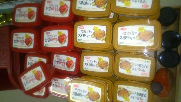 一瞬、釜山かソウルにいるのかと錯覚してしまうほどの、韓国調味料の平積みっぷり。