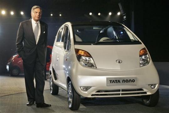 (「Nano」の発表会で、ラタン・タタ氏)