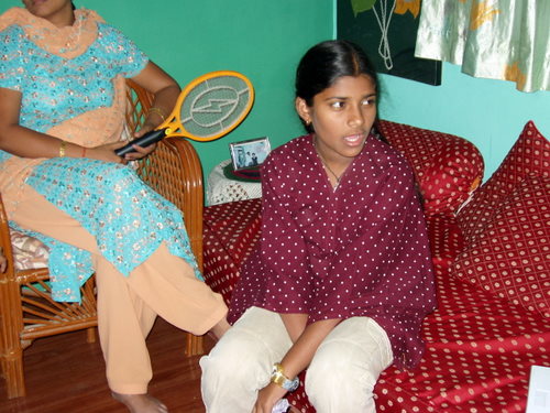 姪っ子のラーダちゃんです。 アコラの美少女です。 うしろにいるのは、シッダールタさんの妹で、ラーダちゃんの母。 手元に握るのは、噂のモスキート・キラー(詳細は22日の小窓を参照のこと)。