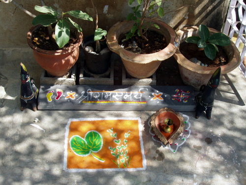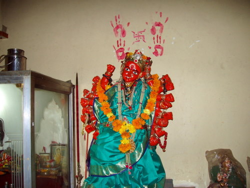 アコラから車でおよそ3時間半、プネへの帰りに寄った、ジャルガオン(Jalgaon)近くのおばあさんの家にあるおどろおどろしい女神。