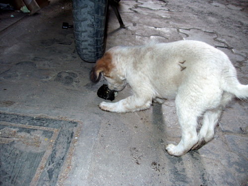 ガッ、ガッ。 (Hさんがあげたエサのおにぎり) ※ のちに判明したことですが、この子はよその子だったようです。