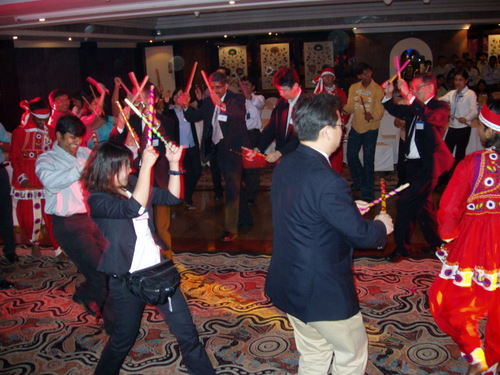 そしてダンディヤーにて弾ける一同!! とくにすばらしい踊りで魅せたIさん(手前女性)、この後インド人男性社員から電話番号を聞かれて大変だったそうです(想像)。