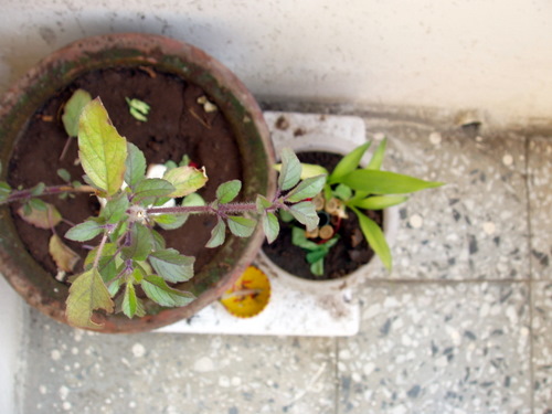 ガーデニングを趣味とする、インドのおとっつぁん(ババ)が、小さなトゥルシーの木を置いていってくださいました。