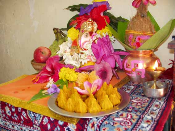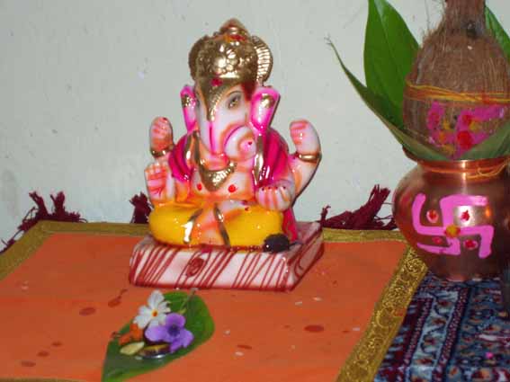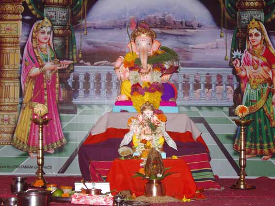 ウェルカム、ガネーシャ。今日と明日が、メインの祝いです。プネは特別に、10日間続きますが、これはガネーシャ様で民衆の心をひとつにして、英国に立ち向かおうと、ロクマンニャ・ティラクという人が提唱した、プネ流の祝い方で、独立運動の際の名残りです。