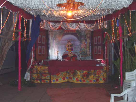 タージマハル!?ついにベールが剥がされたガネーシャ様のステージ、今年はこんな風になりました。夜、ガネーシャ様が到着すると、電飾が点けられました。