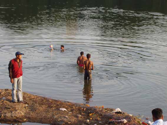 庶民のガネーシャ祭は、今日まで。泥でできたガネーシャ像は、河に流されます。たった1日のガネーシャさま滞在でござんした。