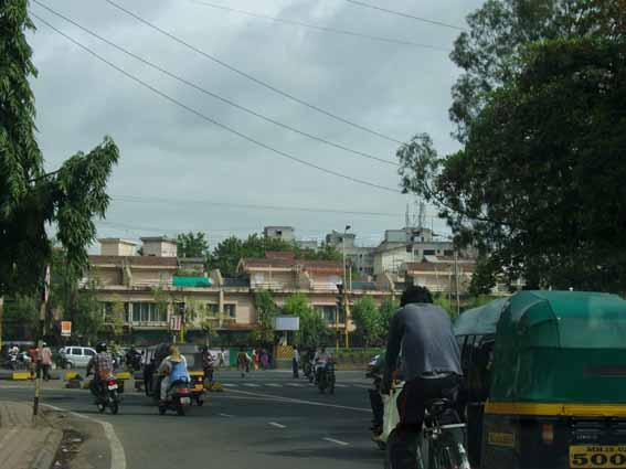 カルヤニ・ナガルからナガル・ロードへの合流点。朝のラッシュ。