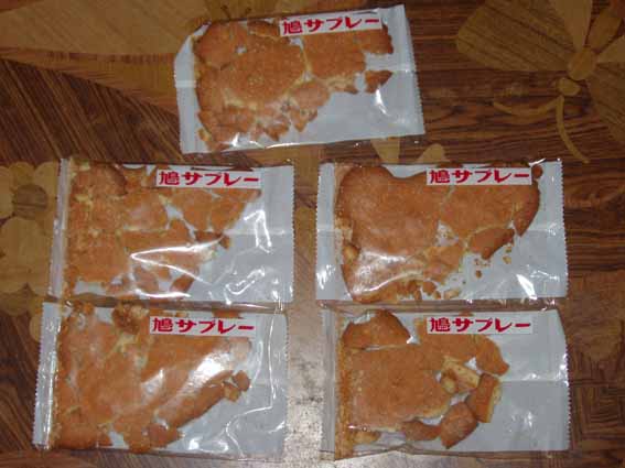 日本の母からお待ちかねEMS。おととい届いていたのを、ようやく開けました。 中からバリバリに割れた鳩サブレが、こんにちは。 |