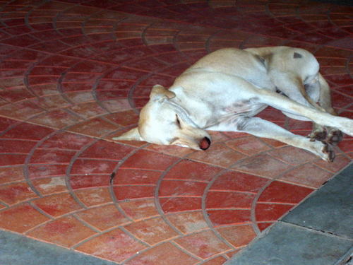 ピンクと白のお花、寝てるお犬。