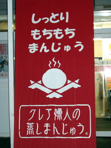Manjuu-ya (steamed bean-jam bun shop). "Shittori Mochimochi Manjuu (moist and glutinous manjuu)" "Madam Clair's Steamed Manjuu" Who is Madam Clair? Moreover, this is in the middle of quiet residential street in Chitose Karasuyama.
