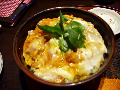 Oyako-don (rice bowl topped with boild chickend with egg)